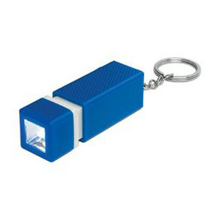 It's hip to be sqaure with our handy flashlight/keychain combo! Pull out to turn light on, push in to turn light off. Available in six great colors. Batteries included.