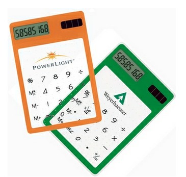 Vibrant colors and ultra-slim design make this imprinted calculator a must-have! This transparent logo calculator features: